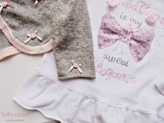 E’ da una settimana che giro per negozi di vestiti per bambini alla ricerca di leggins. Ho un’incontrollabile voglia di leggins. Perchè sono comodi e “veloci”. Quando compro leggins per la mia pupetta cerco sempre qualcosa di particolare, una stampa sfiziosa, colorata, o qualche dettaglio che li renda graziosi e particolari. Per creare un look che sia confortevole e sempre un po’ chic. Questa volta li abbiamo scelti di lana, con giochi di trecce, due fiocchettini e qualche bottoncino a renderli sfiziosi. Li abbiamo scelti grigi, un colore che quest’inverno 2014-15 andrà molto di moda per i bambini. In realtà è un colore che scelgo da sempre, per me e per lei. Lo trovo fine, delicato e mi permette di fare molto abbinamenti. Questa volta grigio e rosa. Prendiamo il grigio e giochiamo con tocchi di rosa sparsi qua e là. Su una maglietta con sfondo bianco e con qualche frills. Su un caldo scaldacuore con roselline. E sulla la più classica delle scarpine da bimba, la ballerina…rosa. Comoda, chic…e molto molto baby.