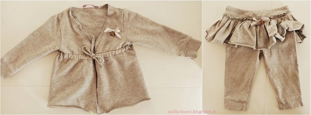 Il completo è un due pezzi in cotone felpato e ha la gonnellina incorporata ad i leggins.