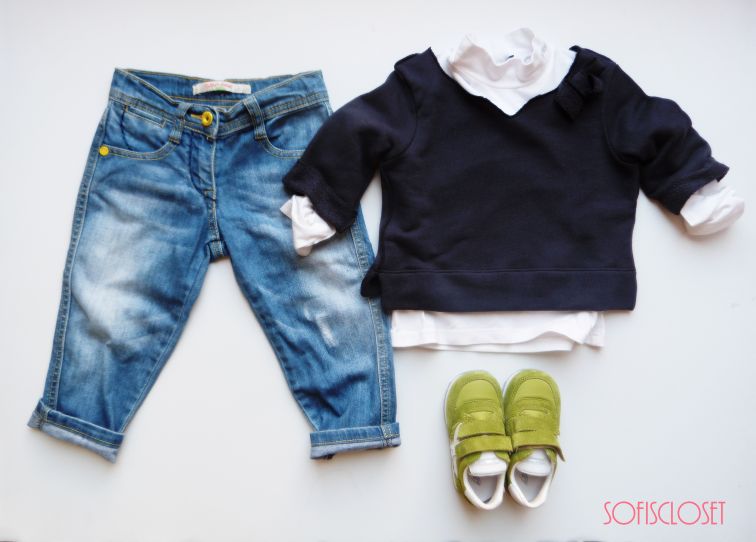 Oggi la mia Sofietta è particolarmente emozionata perchè stasera vengono a cena da noi le sue tre amichette adorate Alice, Bianca e Nora. Ogni volta che glielo ricordo sorride felicissima e chiama “Ici, Nana, Noa…” che è il suo modo di dire i loro nomi :). Ci vuole un bel look comodo, pratico ma sempre…
