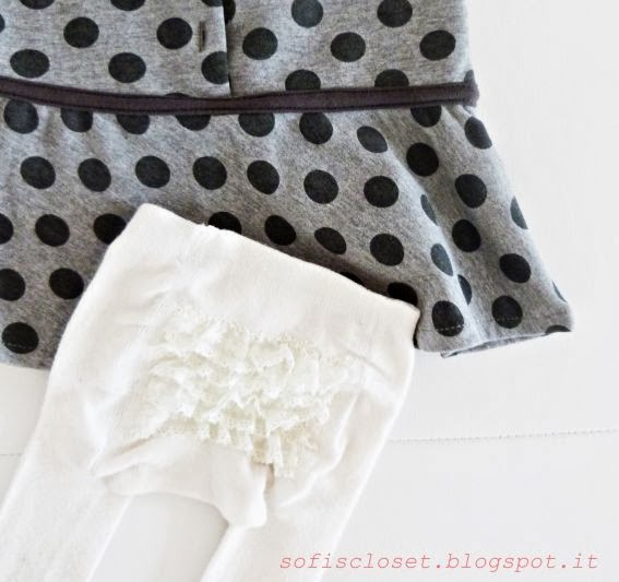 Io ho abbinato il mio vestitino ad un body con colletto e alla mia fantastica calzamaglia bianca con tutto il pizzo sul retro.